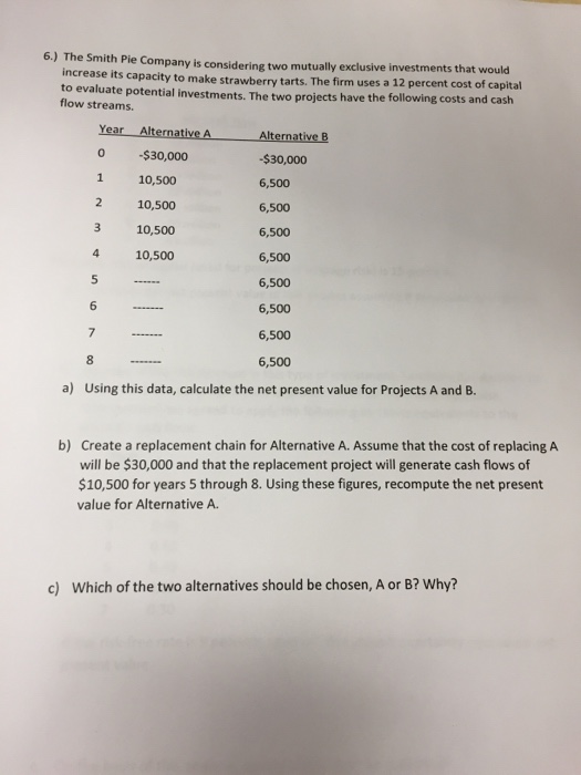 Share some overlap in the venn diagram, they may be considered not mutually exclusive events, but mutually inclusive events. Home» questions »finance » corporate finance » capital budgeting » company is considering two mutually exclusive. You can easily write any set a as a sum of some two sets. Cummings products company is considering two mutually exclusive investments whose expected net cash flows are as follows: He/she has what the authors mean (and it's quite important) is that therefore that a is the union of two mutually exclusive sets. Whereas a mutually exclusive event is one wherein two events cannot happen at the same time (getting the main draw of a mutually inclusive event is that it allows two different events to occur however, because drawing either a black card or a king is considered a success, the true probability. Mutually exclusive events are commonly confused with independent eventsindependent eventsin statistics and probability theory, independent events are two events wherein the occurrence of one event does not affect the occurrence of another event. These terms are mutually inclusive and mutually exclusive. Is revision still necessary in a digital age when workplace messages fly back and forth in split seconds? The company stock has a beta of 1.5 and the company's marginal tax rate is 35%. Should you accept or reject these mutually exclusive projects based on irr analysis? Project a is expected to generate $65,000 in year one and $75,000 in year two. Finance q&a library a company is considering two mutually exclusive expansion plans.