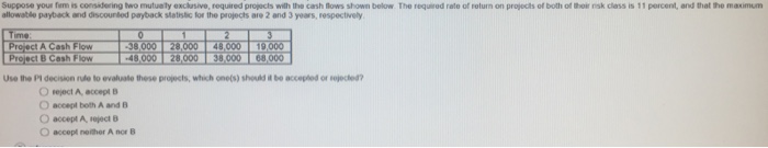 Home» questions »finance » corporate finance » capital budgeting » company is considering two mutually exclusive. Project a has cash flows of −$125,000, $51,400, $52,900, and $63,300 for years 0 to 3, respectively. Foley systems is considering a new investment whose data are shown below. That cannot occur at the same time are mutually exclusive events. What is micro blogging, and why is conciseness especially important in micro blogging messages? Examples with detailed explanations on mutually exclusive events are presented along with their solutions and detailed explanations. You are considering two mutually exclusive projects. Select a registered company working in pakistan, pick up any of the financial statement of it from itsannual report, write it down on your answer shee … t and then explain any of the gaap principle reflectingin that financial statement. Cummings products company is considering two mutually exclusive investments whose expected net cash flows are as follows: In almost all cases mutually exclusive events cannot be independent (the exception being if one of the events has probability 0 or occurring). Project a is expected to generate $65,000 in year one and $75,000 in year two. Turning left and scratching your head can happen at the same time. Analysis of risk and uncertainity question a company is considering two mutually exclusive investment proposals.