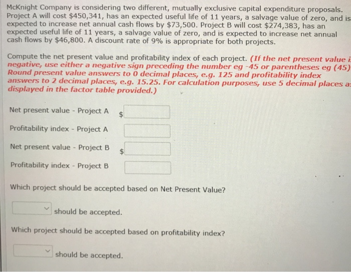 Solved: Brief Exercise 24-5 McKnight Company Is Considerin ... from media.cheggcdn.com Foley systems is considering a new investment whose data are shown below. Analysis of risk and uncertainity question a company is considering two mutually exclusive investment proposals. Year project 1 given that the npv is negative, the discount rate used by the company evaluating the project must be greater than the irr (the discount rate for which the npv equals zero). Mutually exclusive events are commonly confused with independent eventsindependent eventsin statistics and probability theory, independent events are two events wherein the occurrence of one event does not affect the occurrence of another event. Dromedary camels, which have one hump, and bactrian camels, which have two humps. Has been considering replacement investment proposals for the year beginning in 2021. Cummings products company is considering two mutually exclusive investments whose expected net cash flows are as follows: Independent and mutually exclusive do not mean the same thing.