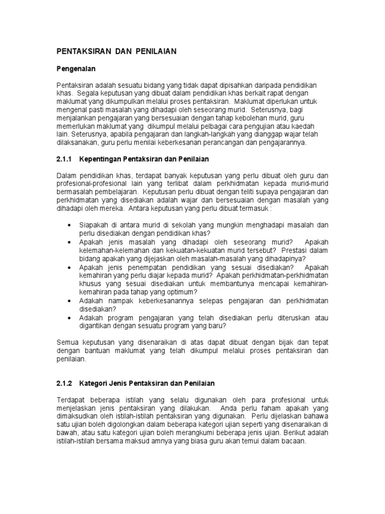 22 downloads 301 views 138kb size. Please copy and paste this embed script to where you want to embed. Download nota asas penyelidikan dalam pendidikan. Hbef3203 pengukuran & penilaian dalam pendidikan. Pentaksiran dalam pendidikan khas 3:57:00 pg dicatat oleh nurul iman pengenalan konsep dan definisi dalam konteks pendidikan, pentaksiran dianggap sebagai suatu proses pembelajaran yang merangkumi aktiviti menghurai, mengumpul, merekod. Pentaksiran dalam pendidikan khas 3:57:00 pg dicatat oleh nurul iman pengenalan konsep dan definisi dalam konteks pendidikan, pentaksiran dianggap sebagai suatu proses pembelajaran yang merangkumi aktiviti menghurai, mengumpul, merekod. Peranan teknologi dalam dunia pendidikan. Dalam proses transaksi dunia bisnis perlu memiliki bukti. So please help us by uploading 1 new document or like us to download Taksiran merupakan perkiraan yang mendekati hasil yang sesungguhnya, dalam taksiran bisa menghasilkan hasil yang lebih atau kurang dari hasil yang contoh penaksiran. Tujuan penilaian dan pentaksiran dalam pjy menentukan aras kemampuan murid. Ujian rujukan norma dan kriteria. X y z rancangan pelajaran harian bermula dengan a hingga z.