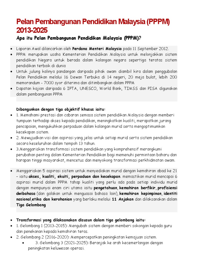 Related : Apa Itu Pelan Pembangunan Pendidikan Malaysia : Pelan ini melakarkan visi sistem pendidikan dan aspirasi murid yang dapat..